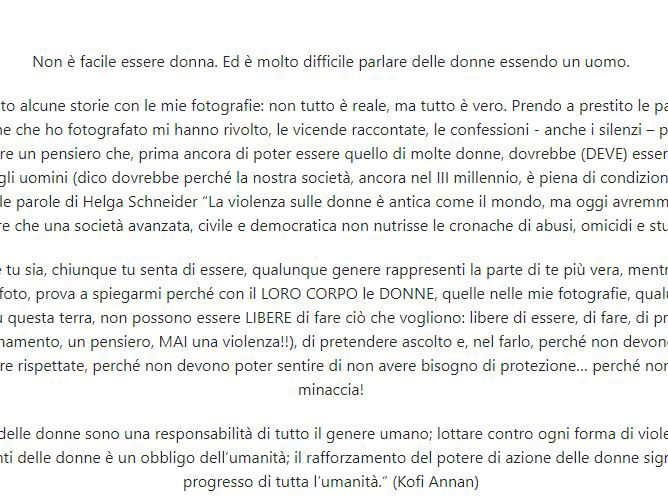 E buttarsi via per ritrovarsi, per fare quel che mi sono negata, per capire che sono bella e non lo ero: non lo ero nelle splendide immagini che riflettevano tutti gli specchi d’acqua in cui mi sono guardata, ché bastava un soffio di vento ad increspare l’acqua per cancellare la figura; non lo ero quando il giudizio degli altri era diventato il mio giudizio quando ancora non sapevo.